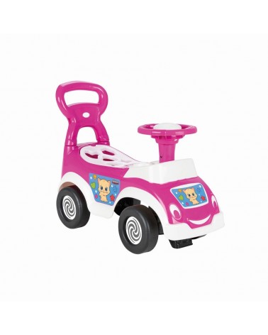 Entre sus detalles más atractivos incluye un asiento con función de clasificador que contiene 5 figuras de colores para estimular el pensamiento lógico y la motricidad fina. Además, dispone de un compartimento bajo el asiento para guardar juguetes y una trompeta mecánica en el volante que enriquece el juego con estímulos auditivos.