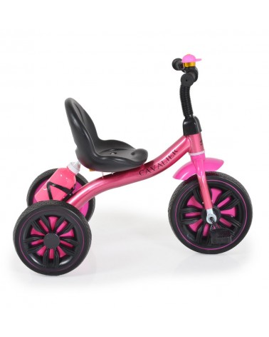 Equipado con neumáticos suaves de EVA, el triciclo CAVALIER LUX ofrece una conducción estable y cómoda en una variedad de terrenos. Su asiento confortable brinda un apoyo adicional durante los paseos más largos, mientras que la campana de metal añade un toque emocionante y divertido a cada aventura. Además, el soporte para botellas de agua garantiza que tu pequeño explorador se mantenga hidratado en todo momento.