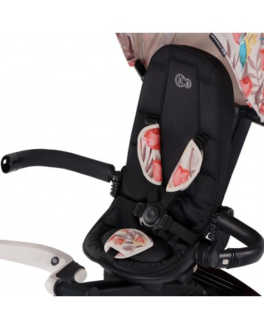 El asiento es giratorio 360º lo que nos permitirá poner al niño mirando hacia nosotros o en el sentido de la marcha. También nos permitirá reclinar hasta una posición semi-acostada. Perfecto para la hora de la siesta.