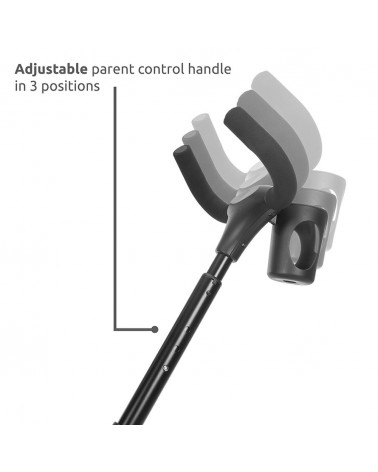 Para un control total, cuenta con frenos en las ruedas traseras y un manillar parental ajustable en altura, ofreciendo un manejo cómodo para los adultos. Su toldo plegable protege del sol, mientras que la bolsa de almacenamiento, cesta delantera y cesta trasera de tela permiten llevar juguetes o accesorios esenciales.