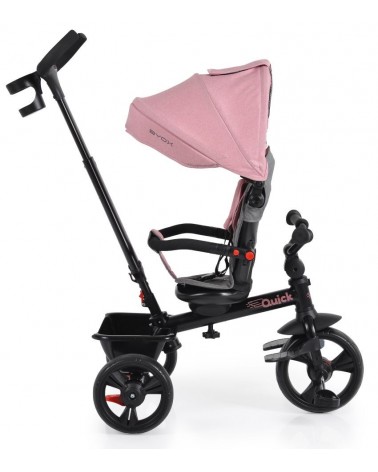 Triciclo infantil evolutivo QUICK de Byox, apto para niños desde los 12 meses de edad hasta los 25 kilos de peso. Con grandes ruedas para facilitar la conducción y asiento reversible para mirar en los dos sentidos de la marcha.