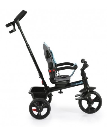 Triciclo infantil evolutivo QUICK de Byox, apto para niños desde los 12 meses de edad hasta los 25 kilos de peso. Con grandes ruedas para facilitar la conducción y asiento reversible para mirar en los dos sentidos de la marcha.